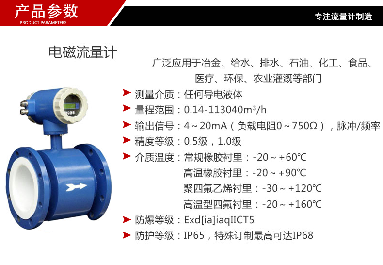 測量泥漿礦漿流量計,泥漿礦漿主要里面含有泥和砂石等固體,我們公司生產的測量泥漿礦漿電磁流量計,主要就是測量這種介質的流量,他有很好的耐磨性,而且對于里面還有的固體泥、沙、石不會影響流量計的計量,也不會影響管道的正常使用。我們專業(yè)生產的泥漿礦漿電磁流量計,管道內部是空曠的,看起來就和鐵管一樣,中間沒有任何的阻礙物。有很好和穩(wěn)定的檢測和測量性能。 主要技術參數(shù) l 公稱通徑系列DN(mm) 管道式四氟襯里:10、15、20、32、40、50、65、80、100、125、150、200、250、300、350、400、450、500、600。 管道式橡膠襯里:40、50、65、80、100、125、150、200、300、350、400、500、600、800、1000、1200。 l 流動方向:正、反凈流量。量程比:150:1。重復性誤差:測量值的±0。1% l 精確等級:0.5級、1.0級(管道式) l 被測介質溫度:普通橡膠襯里:-20~+60℃ 高溫橡膠襯里:-20~+90℃ 聚四氟乙烯襯里:-30~+100℃ 高溫型四氟襯里:-30~+180℃。 l 額定工作壓力:管道式:DN6~DN80≤1.6Mpa, DN100~DN250≤1.0Mpa, DN300~DN1200≤0.6Mpa。 l 流量測量范圍:流量測量范圍對應流速范圍是0.1~15m/s